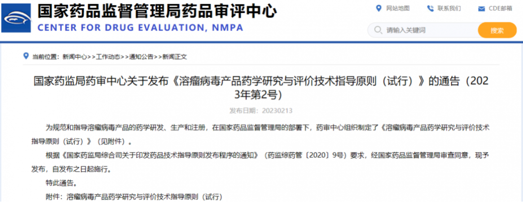 國家藥監(jiān)局藥審中心關(guān)于發(fā)布《溶瘤病毒產(chǎn)品藥學(xué)研究與評價技術(shù)指導(dǎo)原則(試行)》的通告(2023年第2號)