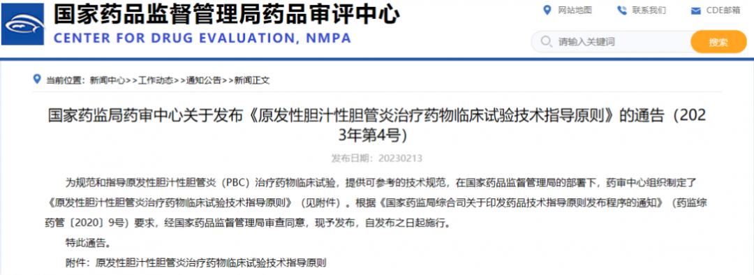 國家藥監(jiān)局藥審中心關(guān)于發(fā)布《原發(fā)性膽汁性膽管炎治療藥物臨床試驗技術(shù)指導(dǎo)原則》的通告(2023年第4號)