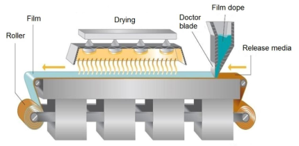 溶劑澆鑄法:溶劑澆鑄法是最常被運用的制備技術(shù),其工藝過程簡單概況而言就是將成膜材料、原料藥和其他輔料溶解或懸浮在適宜的溶劑中,如水、乙醇、丙酮等;混合均勻后去除氣泡,然后澆鑄到模具上或涂布成膜劑,干燥后進行切割和包裝。
