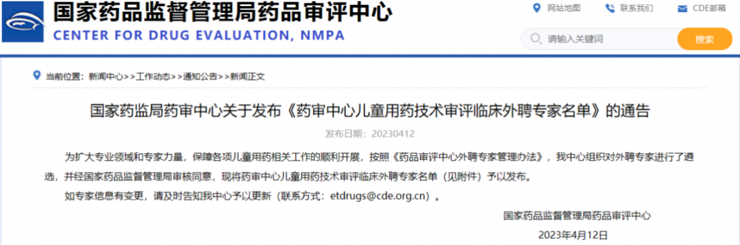 國家藥監(jiān)局藥審中心關(guān)于發(fā)布《藥審中心兒童用藥技術(shù)審評(píng)臨床外聘專家名單》的通告