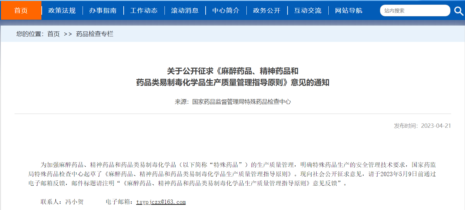 關(guān)于公開征求《麻醉藥品、精神藥品和藥品類易制毒化學品生產(chǎn)質(zhì)量管理指導原則》意見的通知