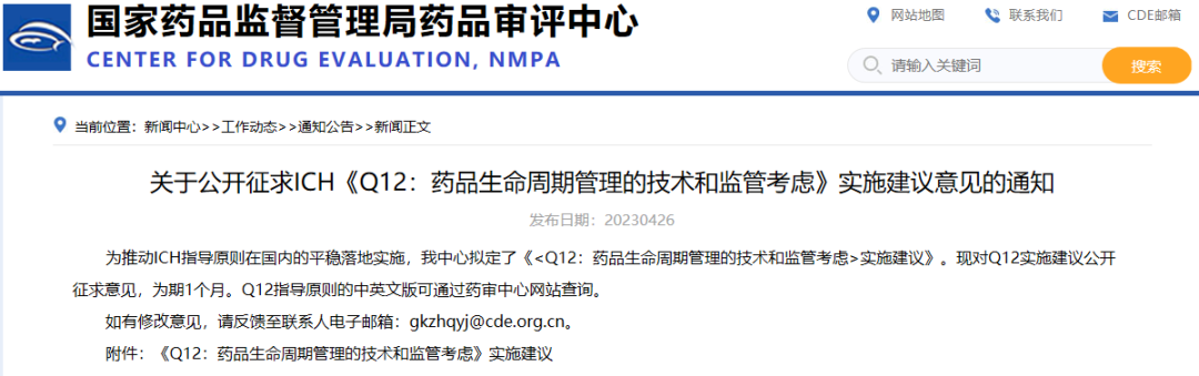 關(guān)于公開征求ICH《Q12:藥品生命周期管理的技術(shù)和監(jiān)管考慮》實(shí)施建議意見的通知