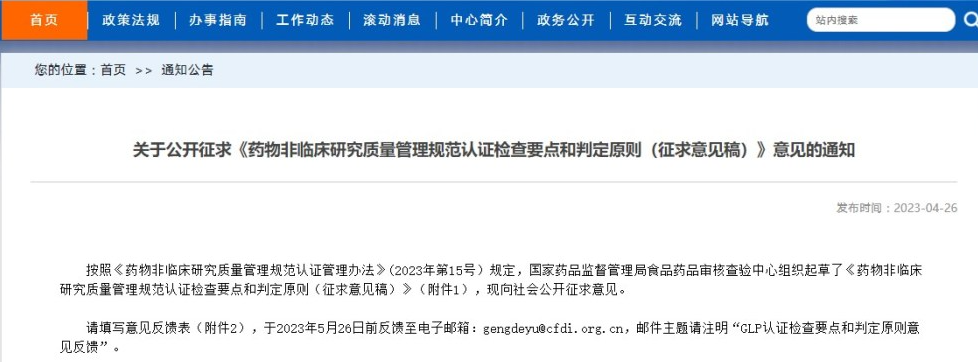 關(guān)于公開征求《藥物非臨床研究質(zhì)量管理規(guī)范認(rèn)證檢查要點(diǎn)和判定原則(征求意見稿)》意見的通知