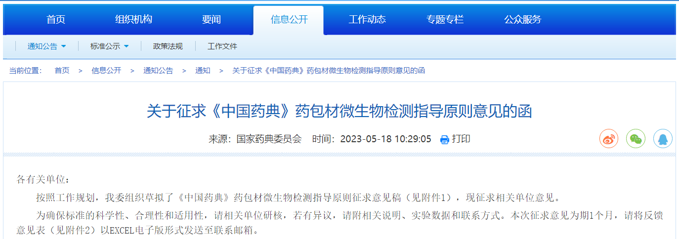 國家藥典委關(guān)于征求《中國藥典》藥包材微生物檢測指導(dǎo)原則意見的函
