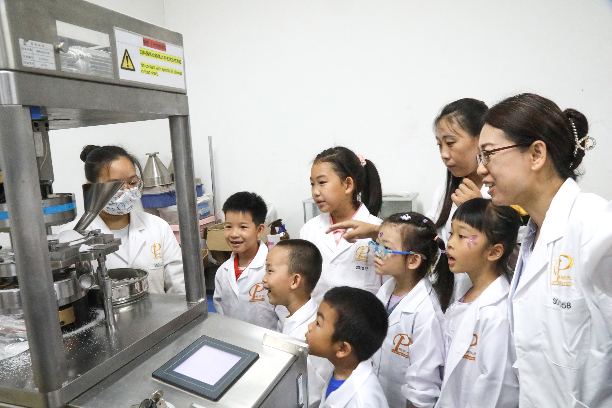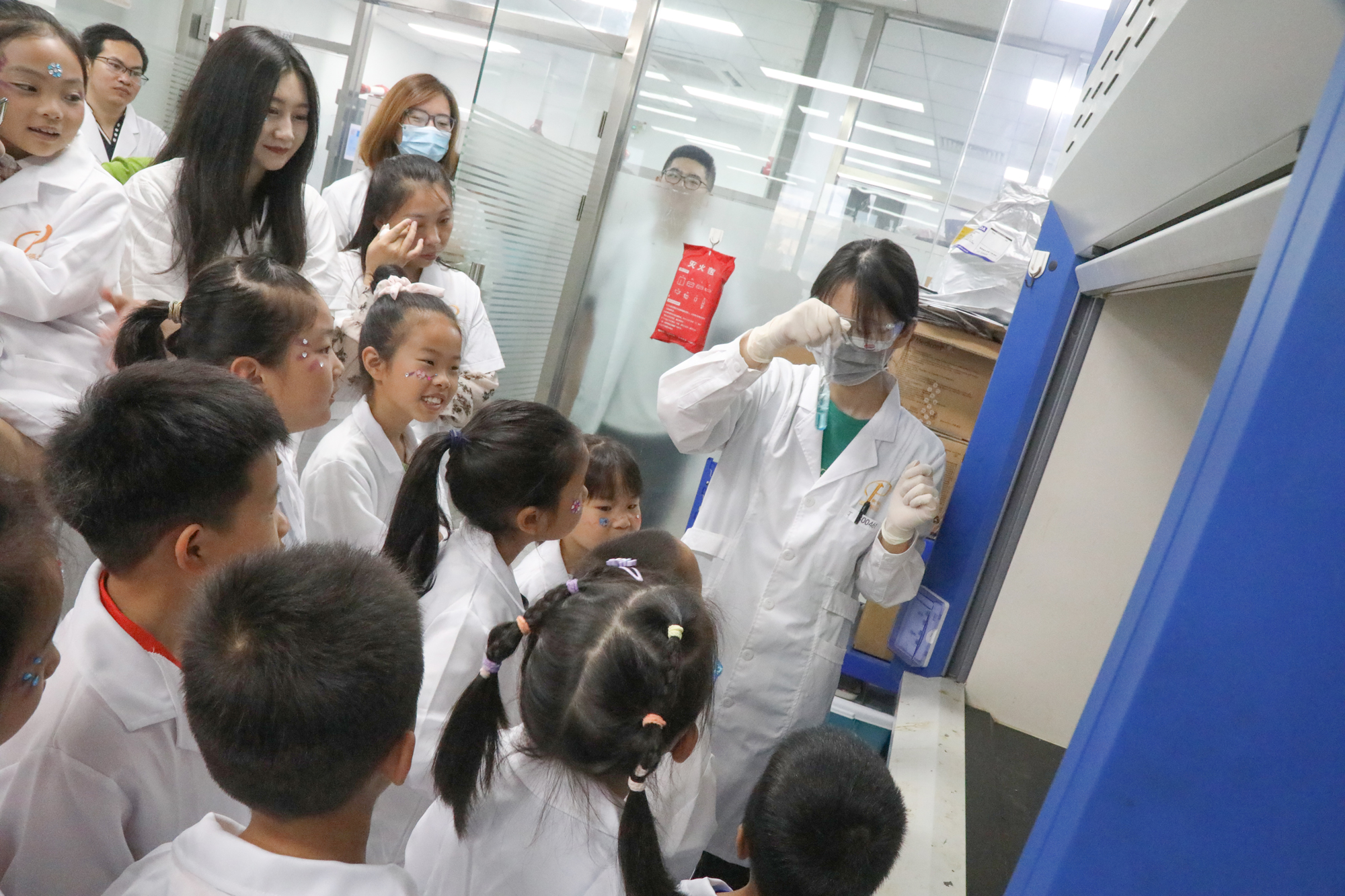 ▲ 參觀爸爸媽媽工作的地方,小朋友們聚精會(huì)神,感受實(shí)驗(yàn)的神奇