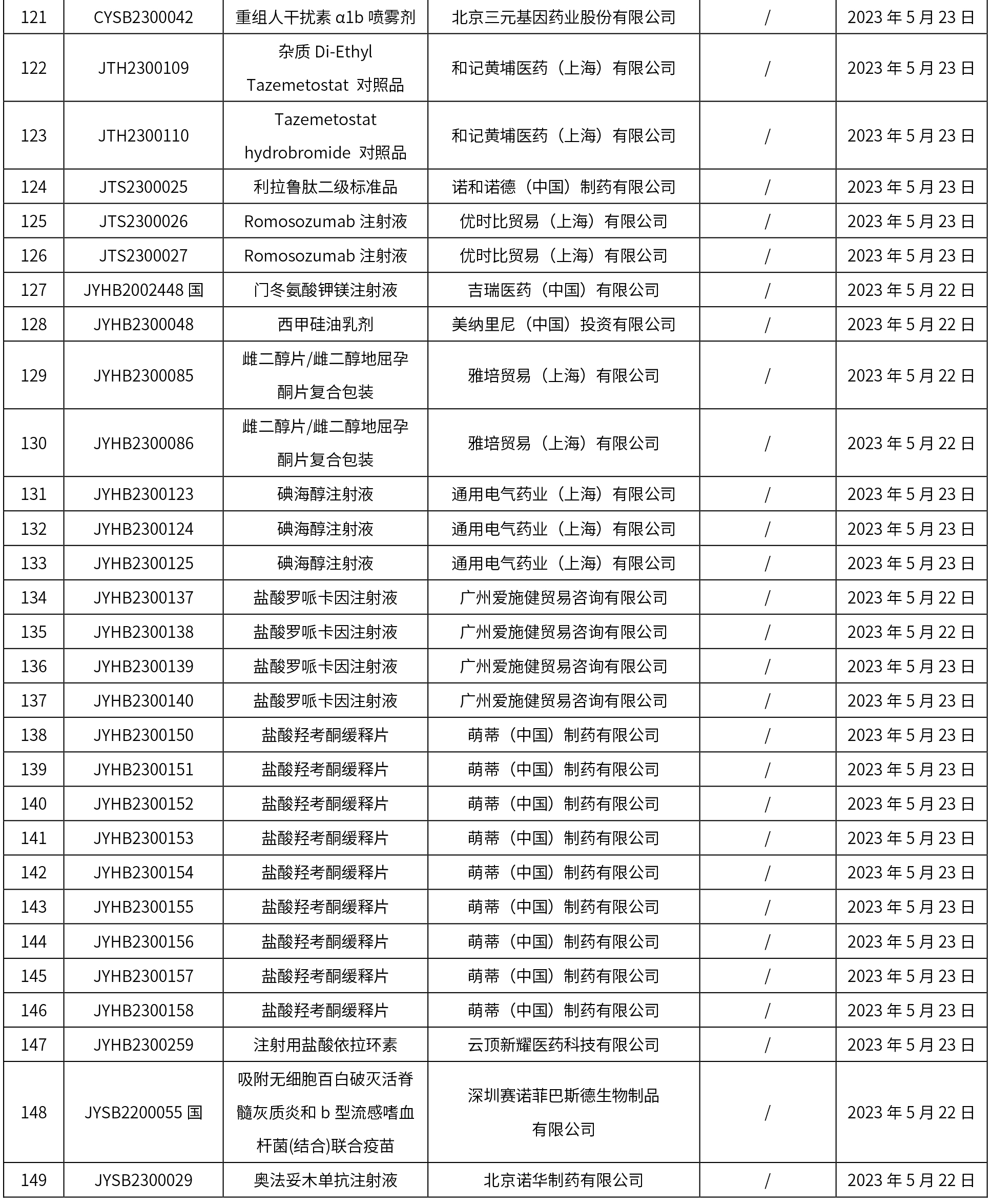本周(截止到05.26下午3:00)共發(fā)布了149個品規(guī)的藥品批準(zhǔn)證明文件待領(lǐng)取信息,一致性評價13個,注射劑88個。