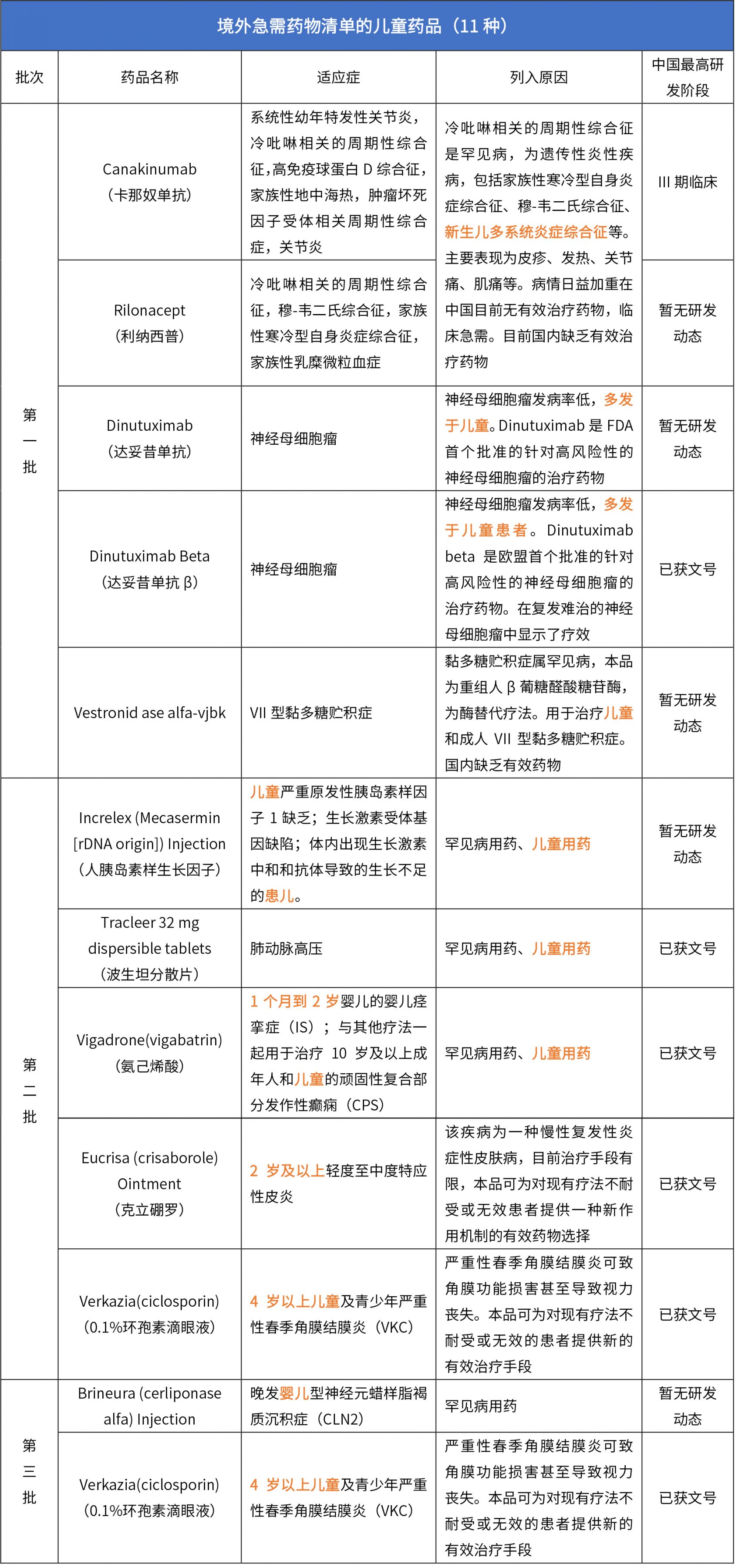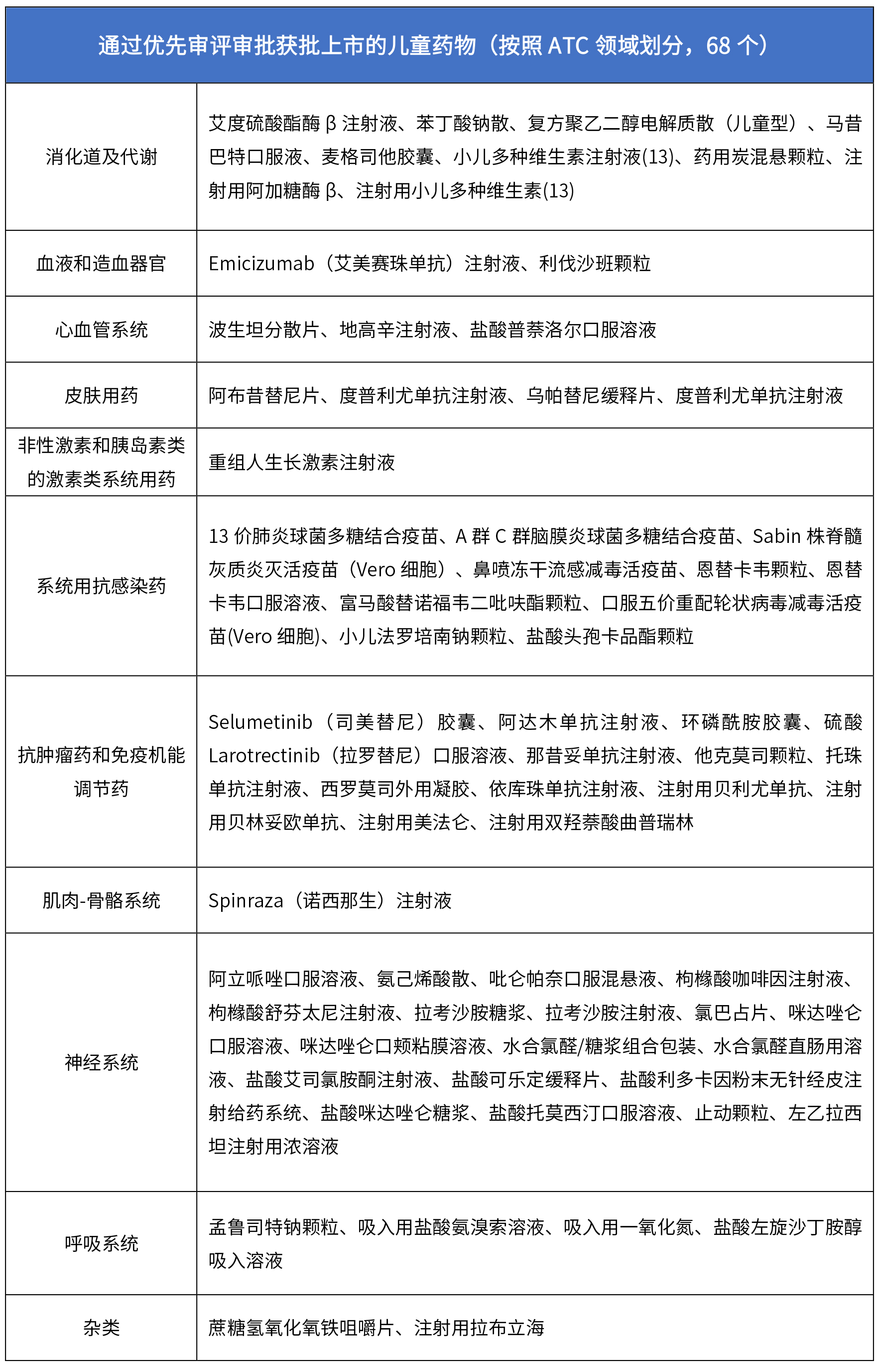 該清單中的藥品涵蓋神經、心血管、抗腫瘤、免疫機能等多個系統(tǒng)。對企業(yè)而言將有助于企業(yè)合理調整生產布局,避免研發(fā)盲目性;對醫(yī)療機構而言可以有效打破“境外有藥、境內無藥”或“無藥可用”的困境;對患兒和其監(jiān)護人而言增加適宜劑型、規(guī)格能夠使兒童服用藥品更加容易,提升不同年齡階段的依從性或順應性。