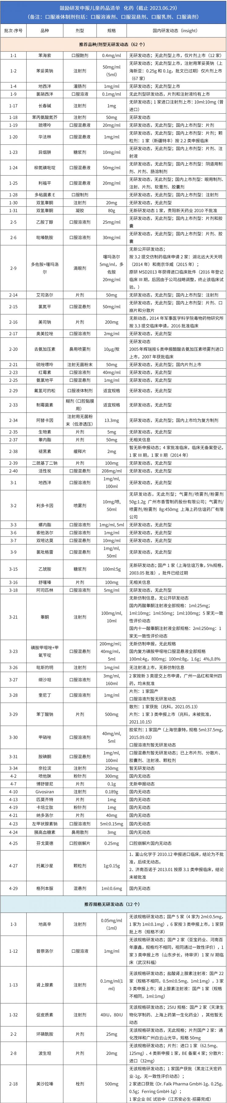 針對兒童優(yōu)勢劑型,新領先醫(yī)藥在口服溶液劑、顆粒劑、散劑、混懸劑、干糖漿、口溶膜、口崩片、分散片等劑型方面均有布局,涉及精神-神經系統(tǒng)、抗腫瘤-免疫、消化系統(tǒng)、心血管系統(tǒng)、血液系統(tǒng)等多個領域,助力國內兒童企業(yè)產品開發(fā)及選擇,以下為新領先醫(yī)藥部分研發(fā)產品清單。