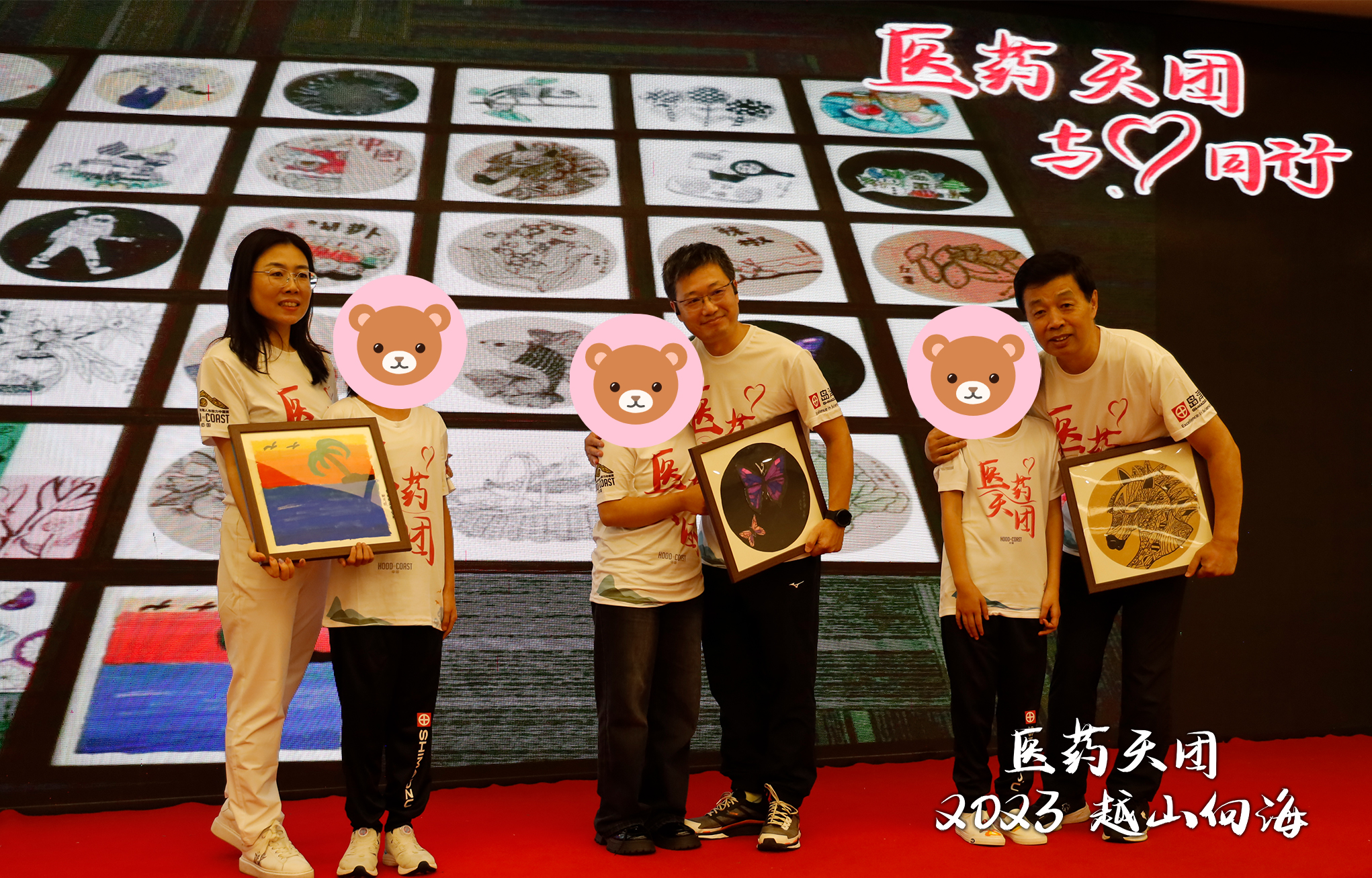 ▲ 臨汾紅絲帶孩子們分別向醫(yī)藥天團(tuán)、新領(lǐng)先醫(yī)藥、島津(中國(guó))贈(zèng)送手繪畫作以示感謝,并祝愿醫(yī)藥天團(tuán)在賽道上取得優(yōu)異成績(jī)