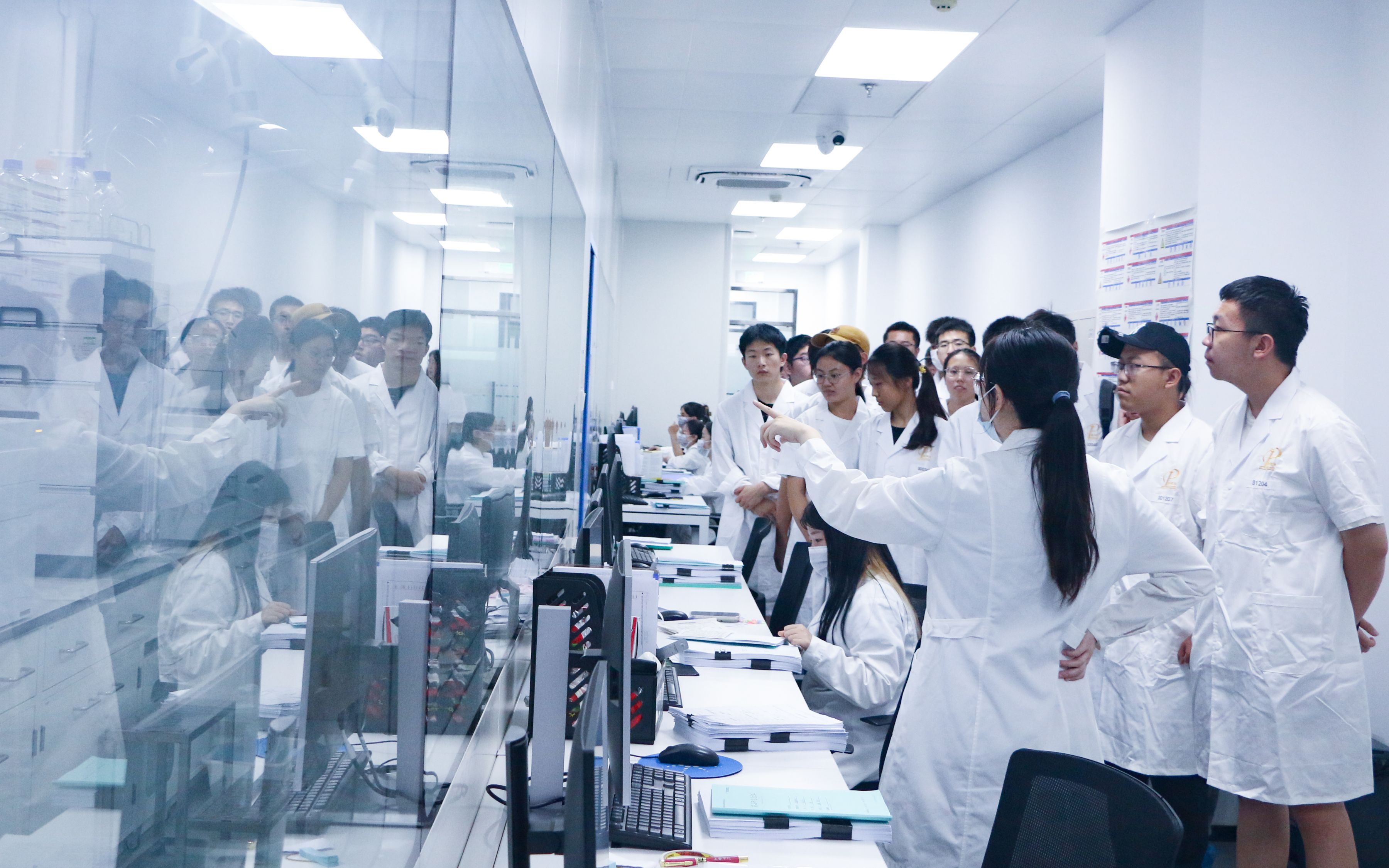 ▲ 師生共同參觀了藥學(xué)研發(fā)實(shí)驗(yàn)室