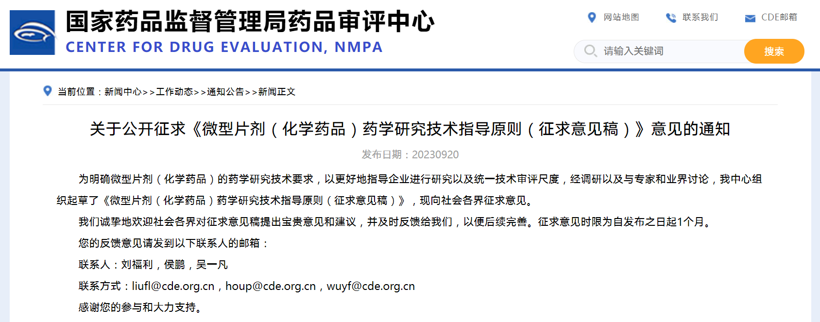 關(guān)于公開征求《微型片劑(化學藥品)藥學研究技術(shù)指導原則》(征求意見稿)意見的通知