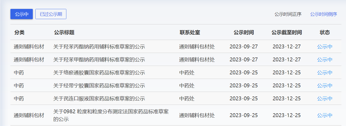 近期藥典委發(fā)布關(guān)于芪連口服液、經(jīng)帶寧膠囊、絡(luò)瘀通膠囊三個品種藥品,羥苯甲酯鈉、羥苯丙甲酯鈉藥用輔料標(biāo)準(zhǔn)草案的公示。