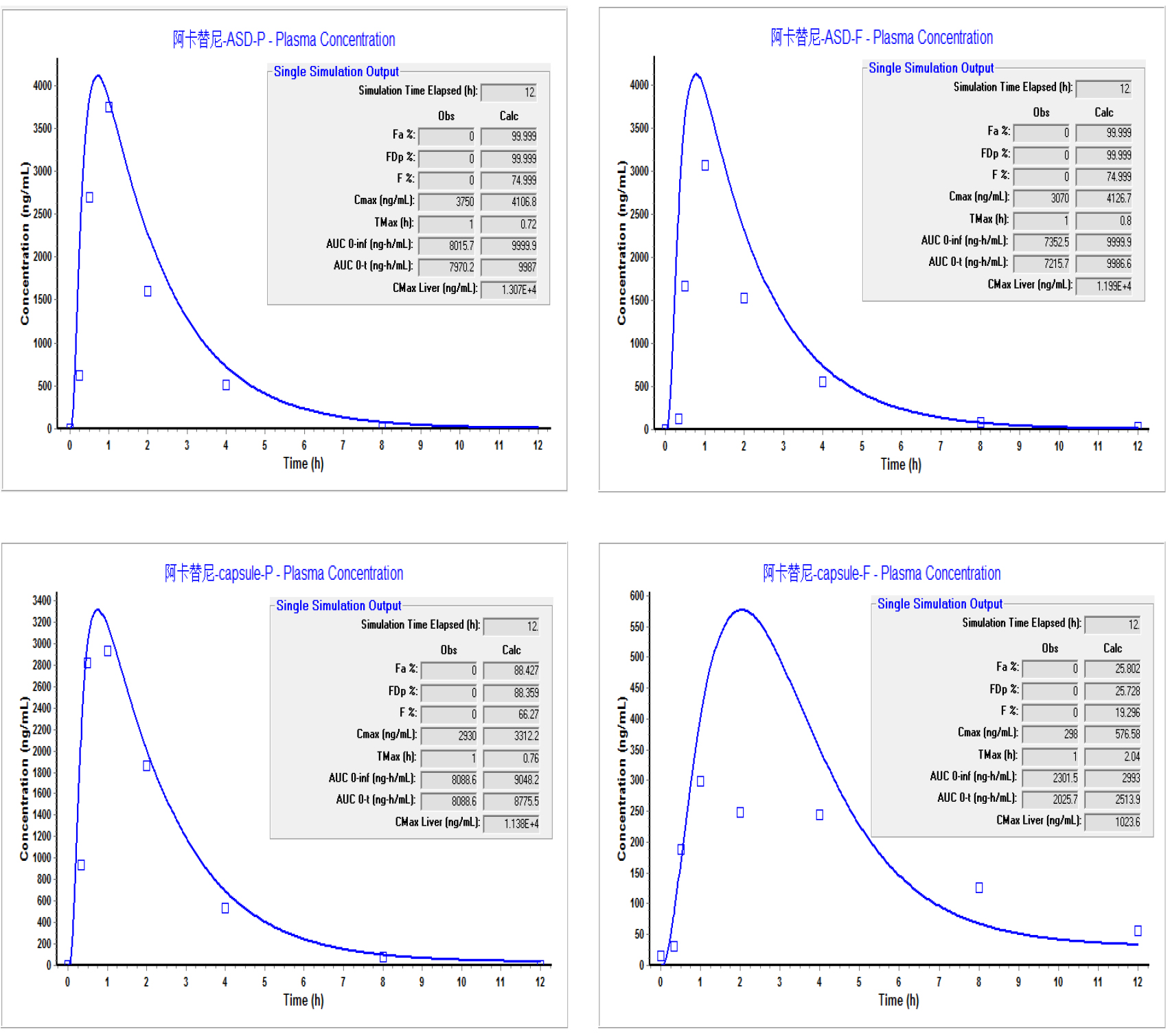 小編采用文章中模型建立參數(shù)值及文獻(xiàn)調(diào)研值,運(yùn)用Gastroplus軟件進(jìn)行重現(xiàn),建立的模型預(yù)測(cè)結(jié)果基本與文章模擬結(jié)果一致,模擬結(jié)果詳細(xì)如下: