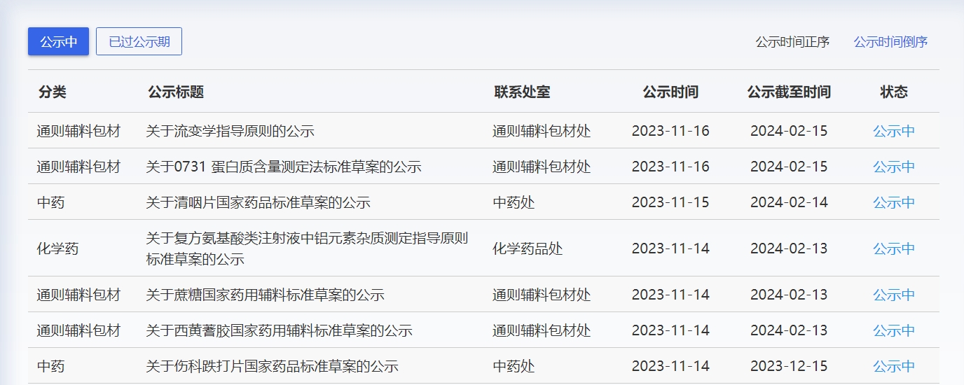 本周國(guó)家藥典委共發(fā)布2個(gè)國(guó)家藥品標(biāo)準(zhǔn)草案公示,2個(gè)國(guó)家藥用輔料標(biāo)準(zhǔn)草案公示。