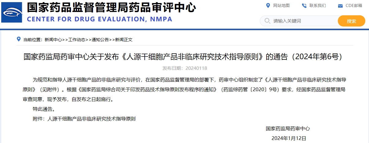 國家藥監(jiān)局藥審中心關(guān)于發(fā)布《人源干細(xì)胞產(chǎn)品非臨床研究技術(shù)指導(dǎo)原則》的通告(2024年第6號)指導(dǎo)原則》的通告(2024年第5號)