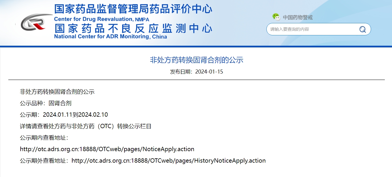 非處方藥轉(zhuǎn)換固腎合劑的公示