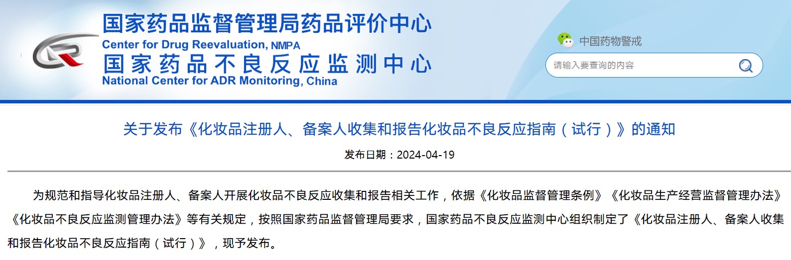 關(guān)于發(fā)布《化妝品注冊(cè)人、備案人收集和報(bào)告化妝品不良反應(yīng)指南(試行)》的通知