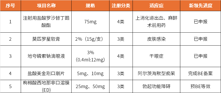 新領(lǐng)先進(jìn)度:已于2023年7月申報(bào),預(yù)計(jì)2025年1月獲批