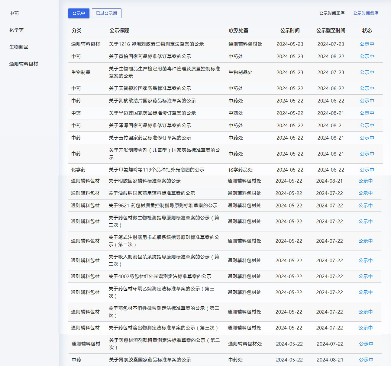 本周,藥典委發(fā)布的標(biāo)準(zhǔn)草案公示如下: