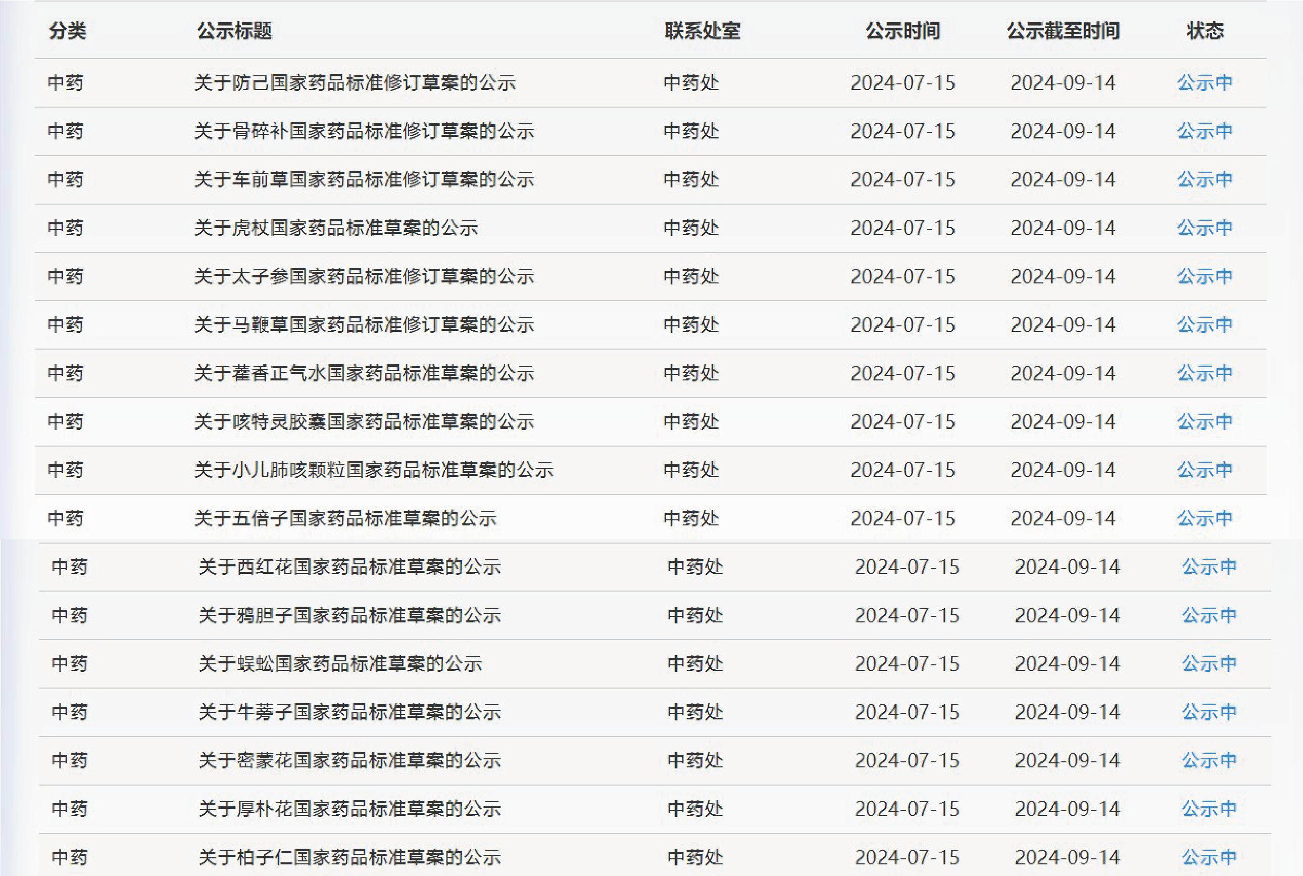 本周,藥典委發(fā)布的標(biāo)準(zhǔn)草及修訂草案公示如下: