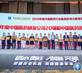 082020-082019年度中國醫(yī)藥行業(yè)最具影響力榜單發(fā)布新領先榮獲中國醫(yī)藥研發(fā)公司20強榜首