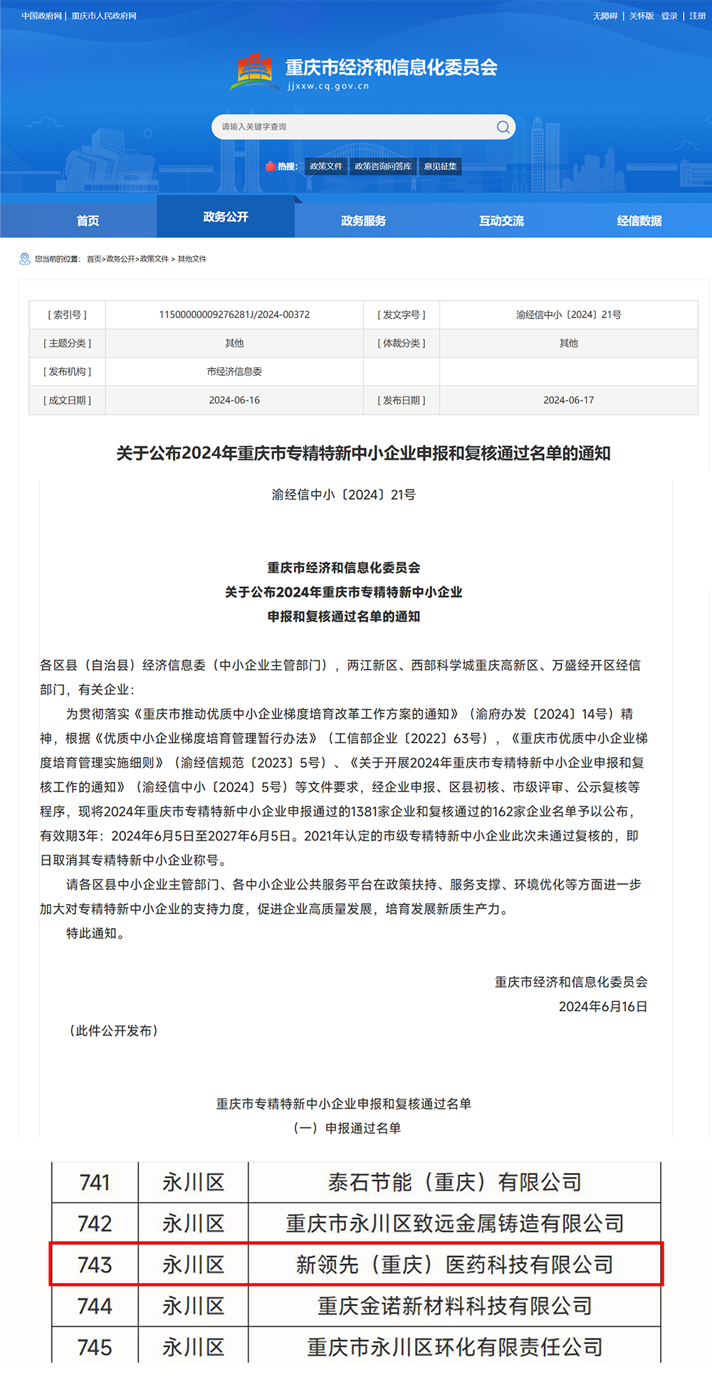 Leadingpharm (Chongqing) Has Been Awarded the Honorary Title of Specialized, Fined, Peculiar, And Innovative Small and Medium Sized Enterprise in Chongqing!